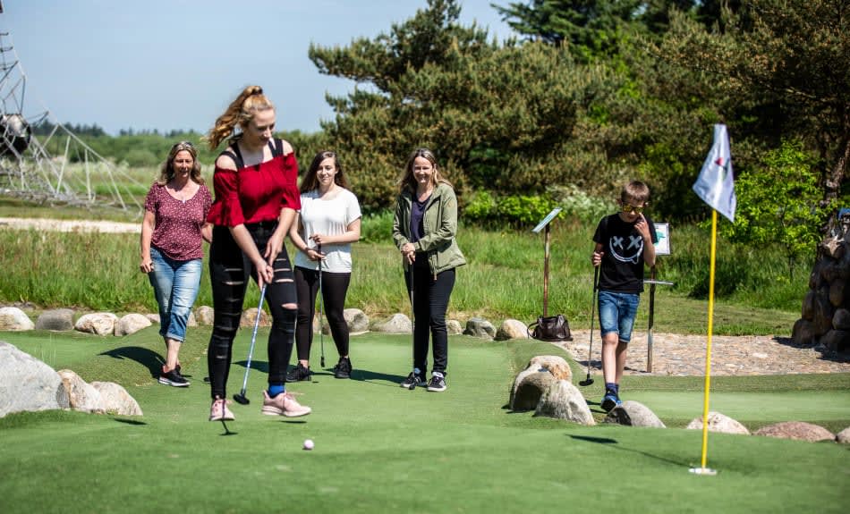 Hier kann die ganze Familie ihr Geschick auf einer der besten Adventure-Golfanlagen Dänemarks unter Beweis stellen. Außerdem warten Fußballgolf, Minigolf, Fußballbillard sowie weitere Spiele und Aktivitäten auf große und kleine Gäste.